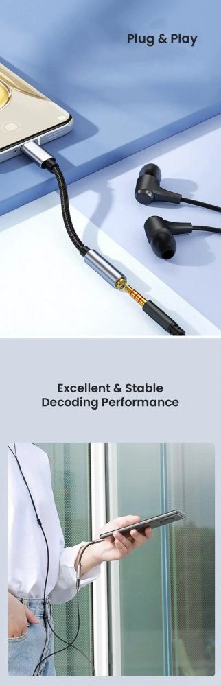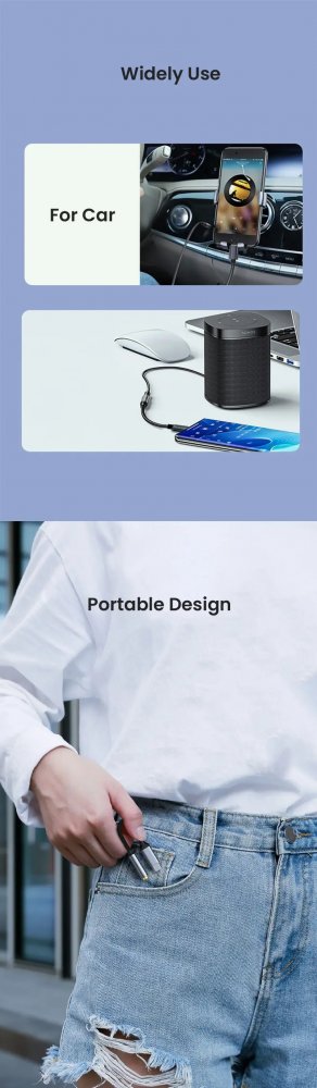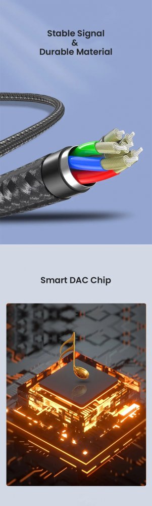 - Zesílené materiály: Nylonový materiál výrazně prodlužuje jeho životnost, kombinovaný nylonový opletený plášť se zesílenými drátěnými spoji, adaptér USB C na aux je dostatečně robustní, aby vydržel jakékoli kroucení, tahání a zamotání. Pevnost skořepiny z hliníkové slitiny a konstrukce kabelu proti ohýbání byla vylepšena, aby byla odolnější.