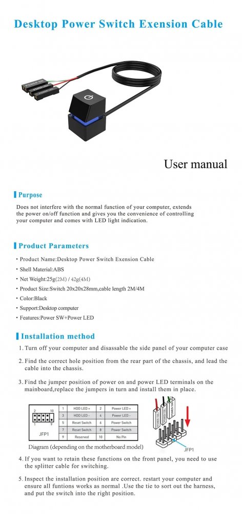 - Pomocný kabel rozdvojka pro současné připojení externího a interního case tlačítka (původního na case) (1ks)